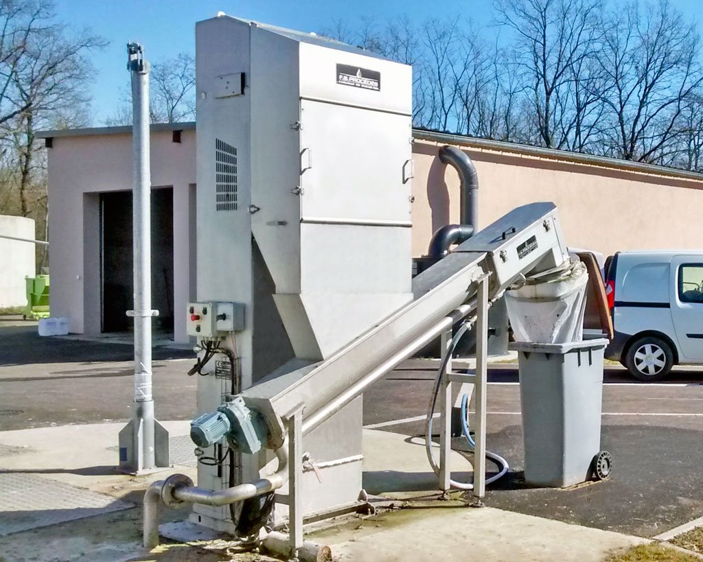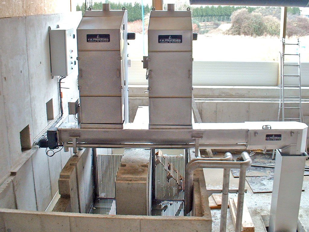 Totalmente diseñada según las especificaciones del cliente, cada reja es única. Utiliza como elemento de tracción de la cuchara de desbaste, una cinta única y central. Una característica común a todas las rejas de desbaste automáticas FB Procédés.